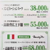 (英・伊国製服地など)高級スーツ(お仕立上り)55.000円(税込み60.500円)