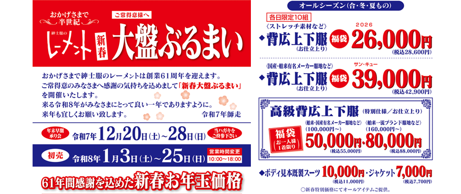 - 2024年12月24日 イベント レーメント60周年記念大盤振る舞い開催